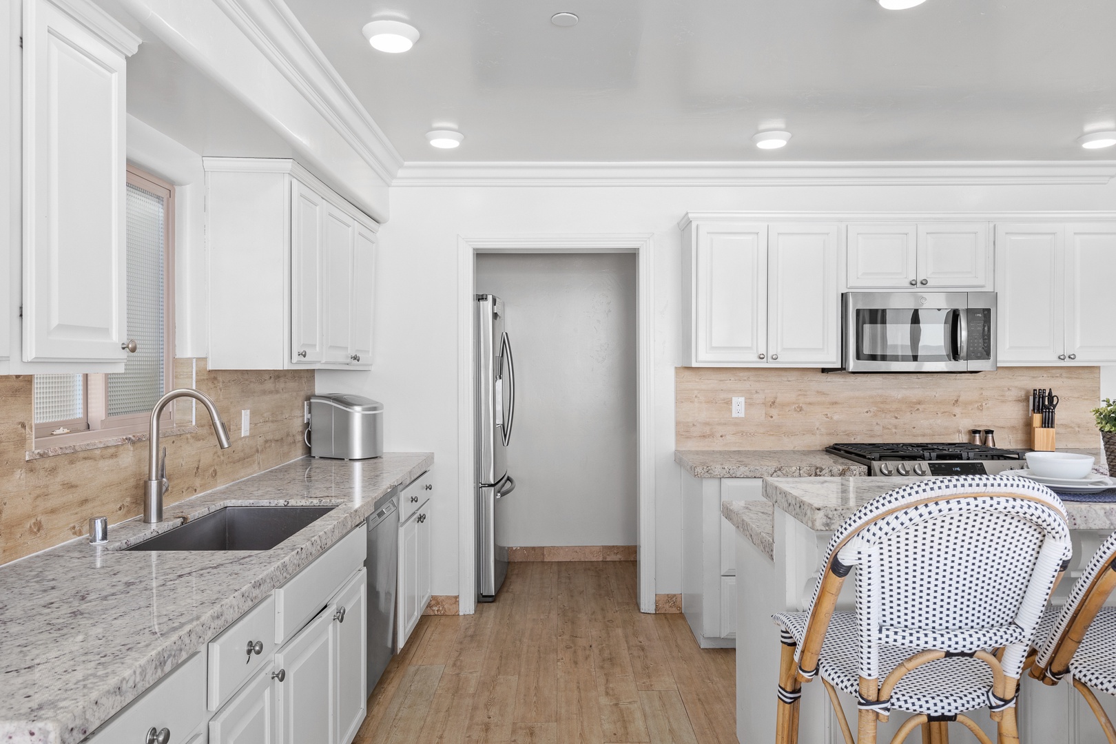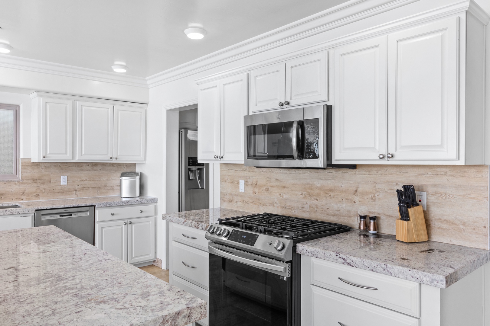 Step inside to a spacious open-concept living area. The gourmet kitchen is