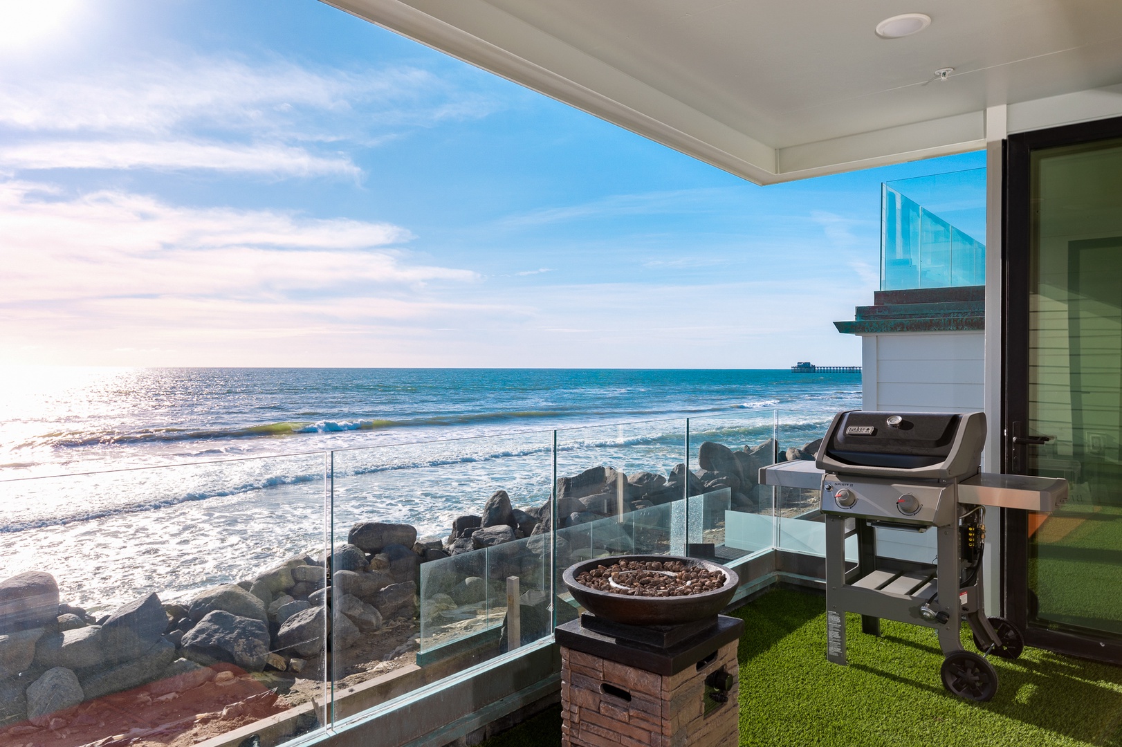 thoughtfully designed for your comfort. Whether you’re sipping coffee at sunrise or watching the sunset from the spa, this Oceanside retreat offers the ultimate coastal experience.