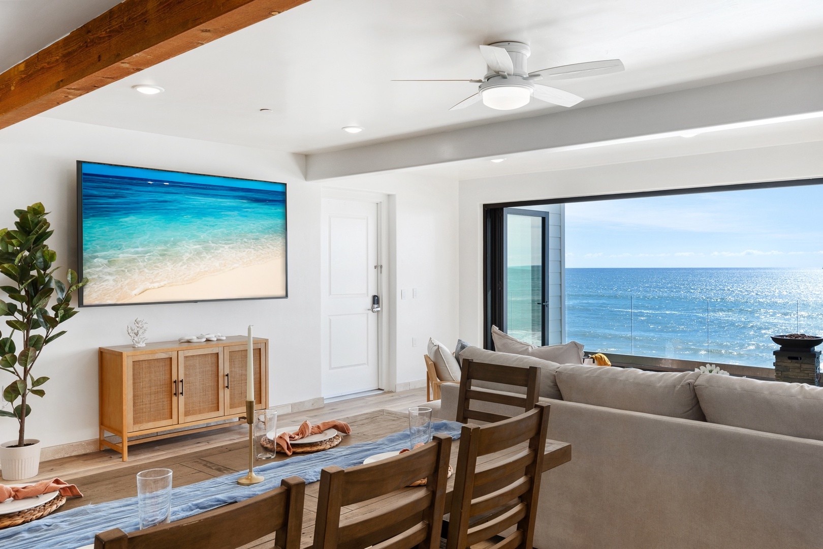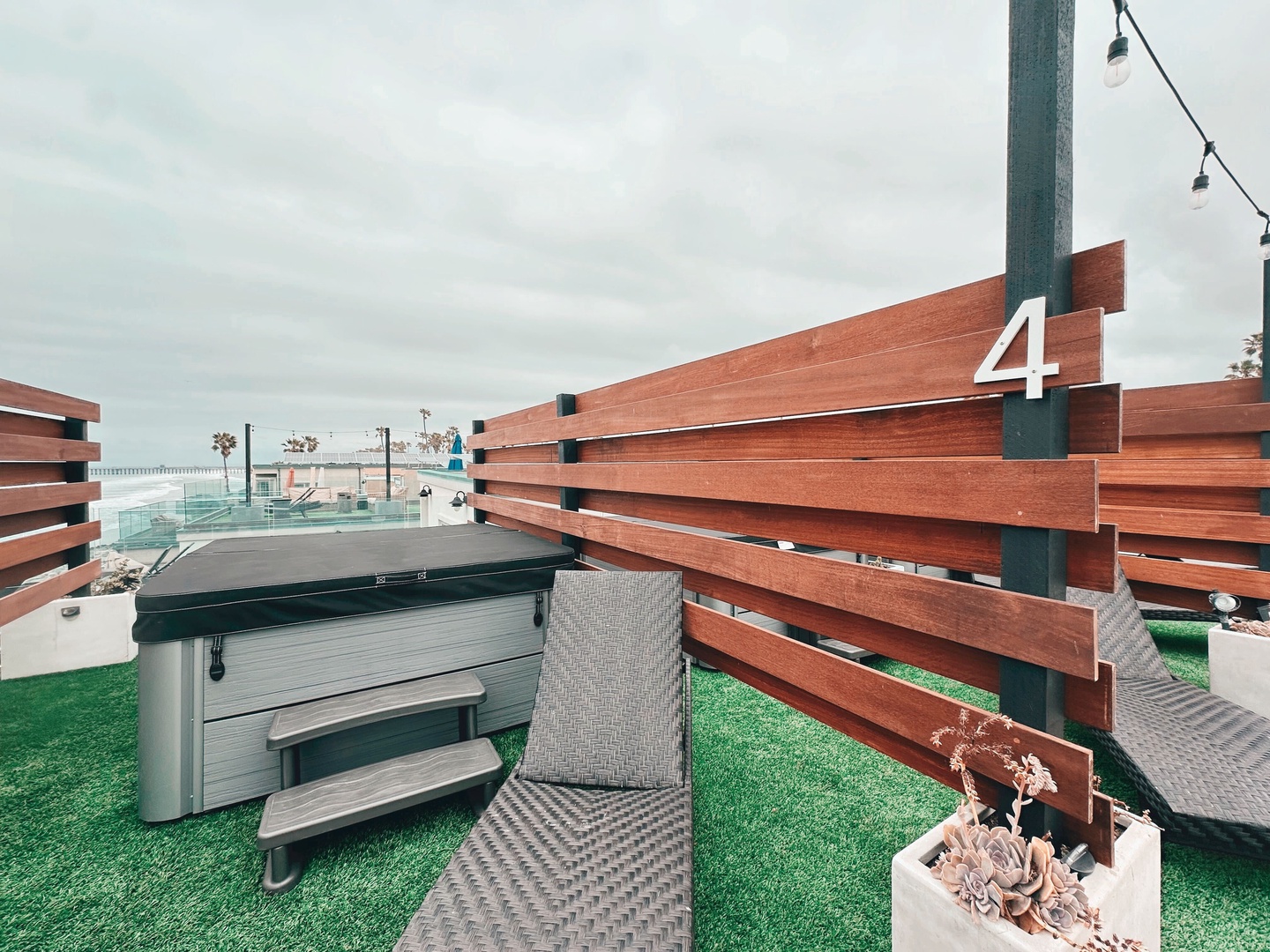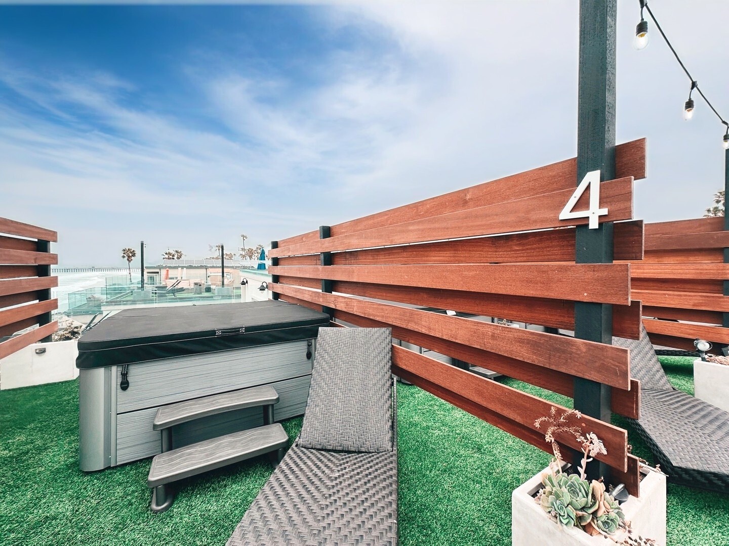Outside, you’ll find premium amenities designed for ultimate enjoyment. Unwind in the hot tub located on the rooftop deck while taking in sweeping views of the Pacific. The rooftop deck is perfect for al fresco dining, complete with a BBQ grill and plenty of seating for sunset gatherings.