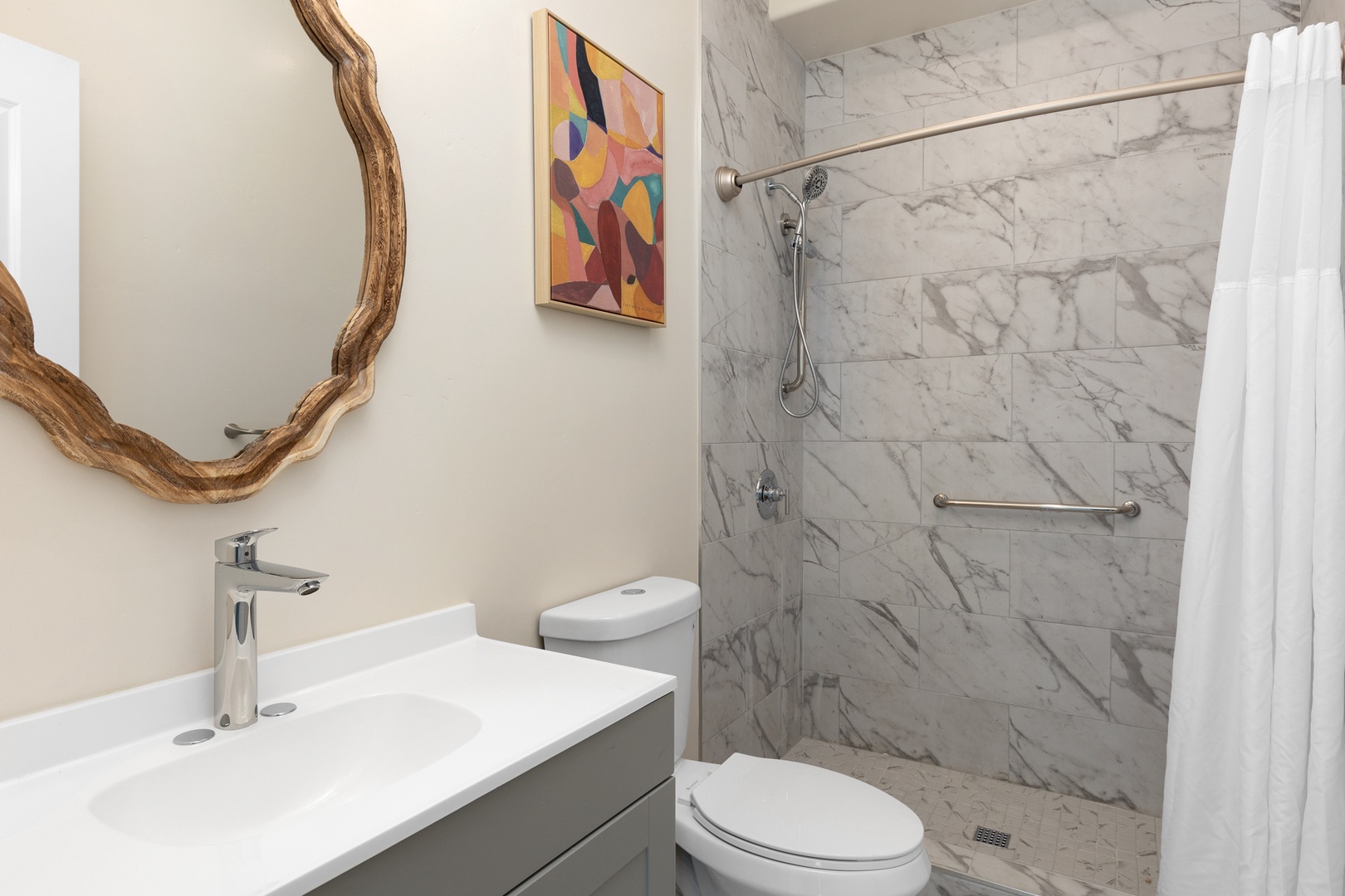 Comfort is ensured year-round with central mini-split heating and air conditioning units in every room, and the in-unit washer and dryer make longer stays effortless. The fully equipped kitchen and open living space create a perfect setting for cooking, dining, and relaxing with family or friends.