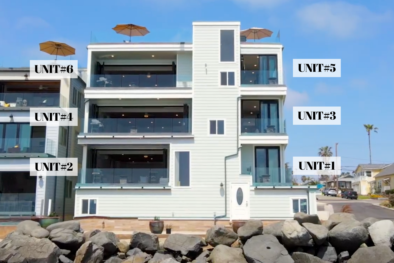 All homes in Oceanside, CA sit behind a rock barrier protecting the homes from storm surges. The amount of sand beyond the rock barrier varies quickly with storms and tides and may have more or less sand than what is shown in the photos.
