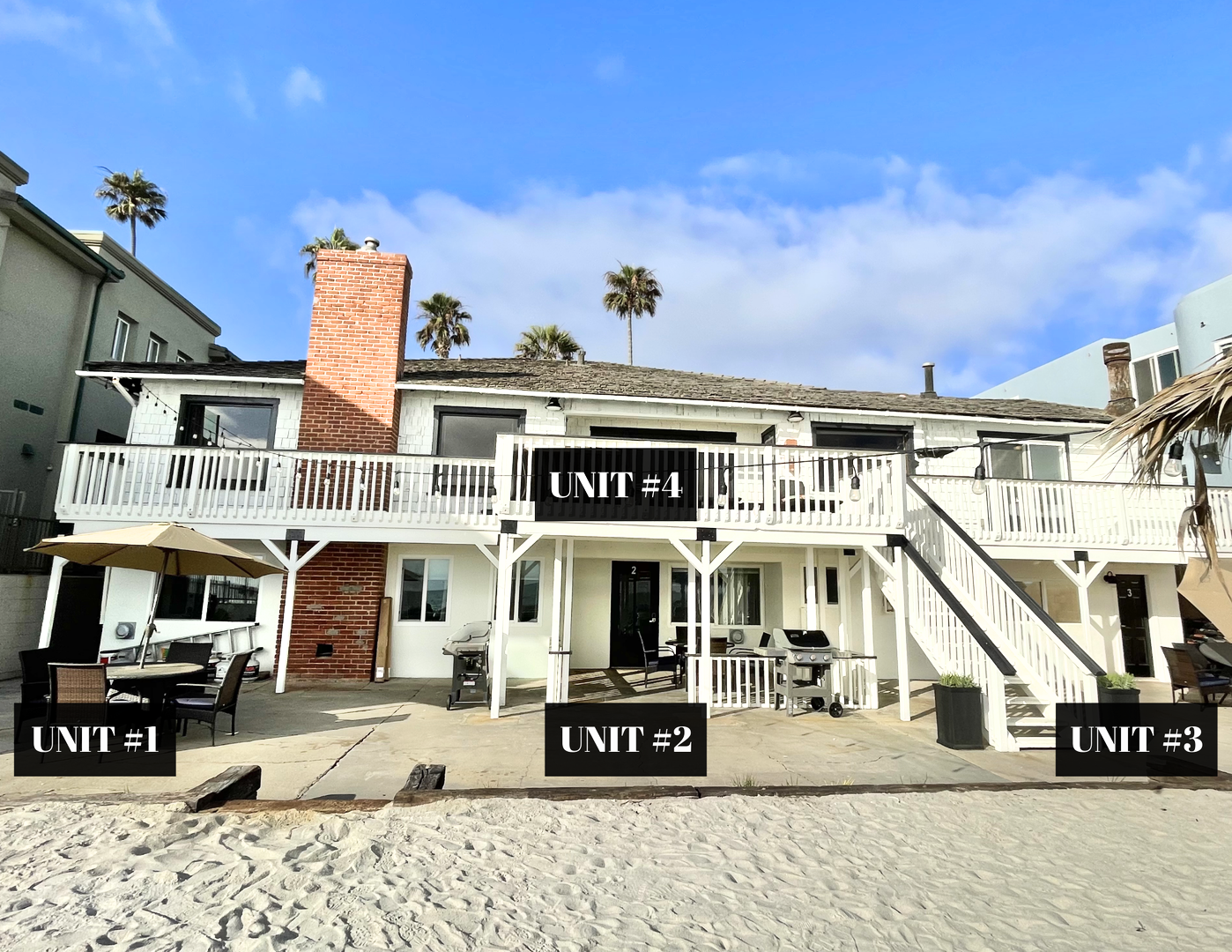 All homes in Oceanside, CA sit behind a rock barrier protecting the homes from storm surges. The amount of sand beyond the rock barrier varies quickly with storms and tides and may have more or less sand than what is shown in the photos.