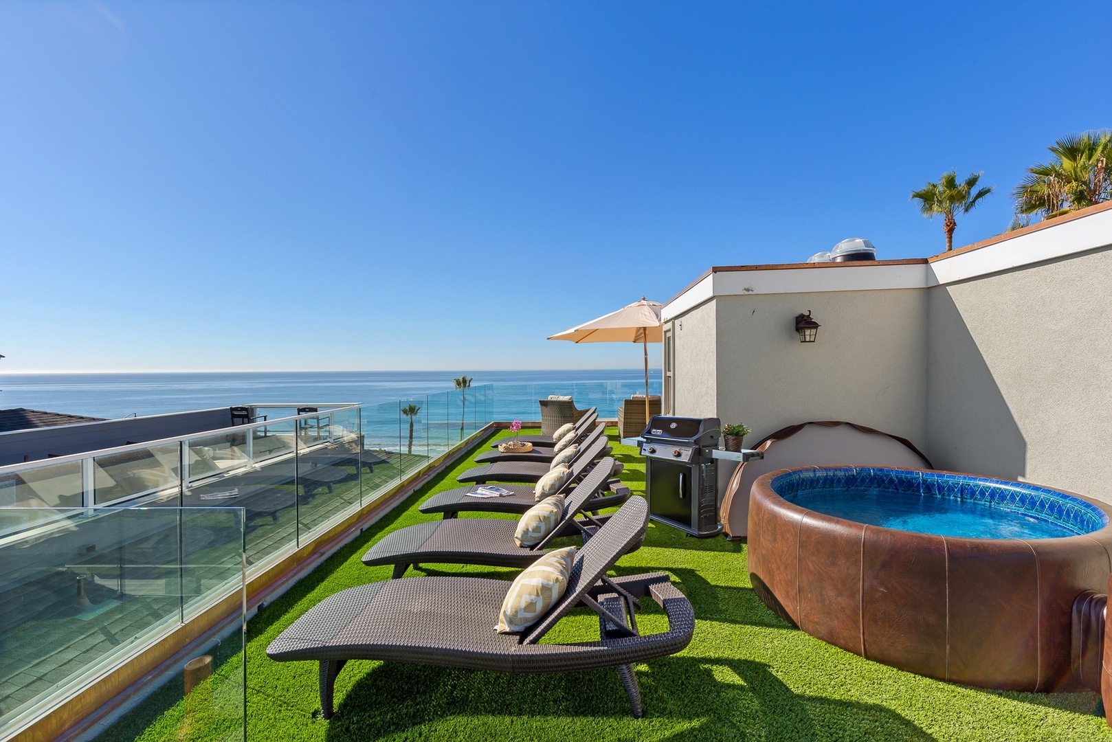 Outdoor living is a highlight at Pe-1724, with a private deck, BBQ grill, and fire pit, offering the perfect setting for al fresco dining and evening gatherings. The rooftop deck provides panoramic ocean views, while the private spa invites you to unwind and relax.